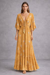 فستان ماكسي بتصميم بوهيمي بأكمام قصيرة وتطريزات