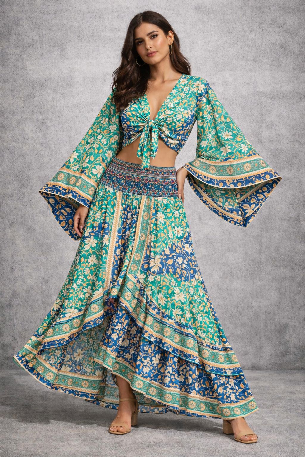 A skirt set with a top with long sleeves